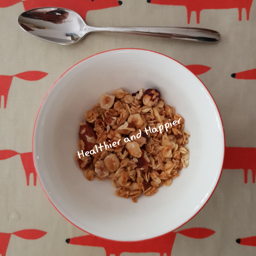 But I have always been a bit concerned about how much sugar they put in the granolas you buy at the supermarket. So I have decided to make my own. Here’s my recipe :